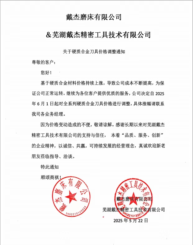 各大硬質合金刀具生產(chǎn)商從2025年6月開始不約而同上調產(chǎn)品出廠價格,以應對成本上漲壓力。
